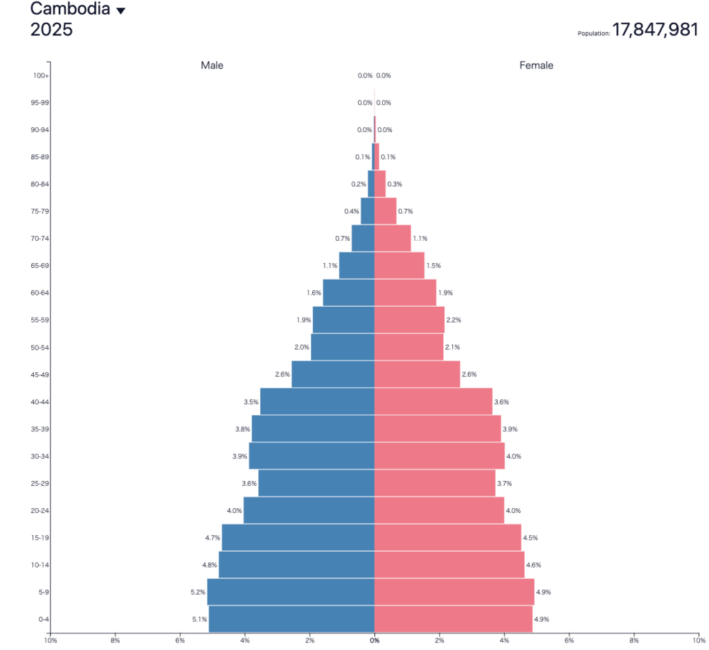出典:PopulationPyramid.net(カンボジア 2025年推計人口ピラミッド)